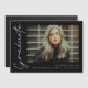 この写真モダン卒業の発表はエレガント、スクリプト卒業サイドバーのオーバーレイとカスタマイズ可能な名前、学校と写真を特徴とする。