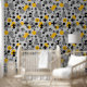 シンボルコンテンポラリーパターンが黄色、灰色、黒の壁紙。