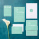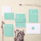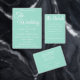 トレンディー上のシンプルスタイル結婚式招待状、お好みのホイル色でスタイル化されたスクリプ結婚トで印刷された"The's"のシーフォーム色の背景。名前、日付、場所などを編集し、自分の情報を白いレタリングで印刷。Seaooamスタイルのコレクションとシンプル連携し結婚るように設計。