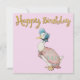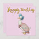 Jemima Puddle Duckパステルピンクの背景。ハッピーバースデー文字金ゴールド。