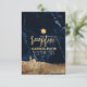 ✡ PixDezines 偽の金色のエルサレムの壁 ミッドナイトブルーの大理石の背景 バー ミツヴァ 受付カード。 偽の金色の「祝賀は続く」のモダンなスクリプト 裏面。 すべての要素は編集可能で削除可能、300以上のフォントとフォントの色から選択。