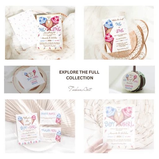 ミニマルで可愛い水彩色のジェンダーが、手書きのスクリプトと可愛い紙吹雪の背景を備えた青とピンクのアイスクリームを特徴モダンとするナプキンを明らかにする。夏の性別の明けに最適。