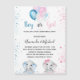 性別の明らかにのためのパーティー、赤ちゃんシャワー。シックな白い背景。飾グリッターと青、ピンクと白の風船とグリッターの塵と。男の赤ちゃんゾウとガブリガールのゾウ。カスタマイズし、ママの名前を追加するbeとパーティー詳細。名前と文字:男の子または女の子は手書で書かれたスタイルスクリプトを持つ