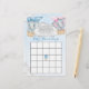 赤お洒落ちゃんシャワーのビンゴは、青い水の色の背景に青とピンクの熱い空気の風船の雲の中で愛らしい男の赤ちゃんと女の子の象を備えている飛んでいる。簡単の「パーソナカスタムライズ」ボタンを使ってクリックオプションでパーソナライズする。