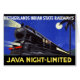 月明かりの夜をスピードを出す列車を示す、復元されたデジタル強化された旅行ポスター。オランダインディアン州鉄道Javaナイトリミテッド。不完全さと涙が取り除かれた。色を修正。画像はLibrary of Congressの提供。