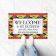 JAMAICA GRENADAファミリー歓迎フォーマットとカスタマイズ可能な文字。"スタイリッシュWELCOME & BE ALL WHO ENTER HERE 賛美 plus placeholder name"の文言と愛国的な歓迎の形式。背景はGRENADA & CARRIACOUの国旗で、ジャマイカの国旗の地図の輪郭が全面タイル状に描かれている。すべての文字はカスタマイズ可能で、例えば家族の名前、家族のモットー、引用文を追加する必要に応じて用語を修正でき感動的る。