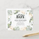 キリン、金ゴールド効果とエレガント緑のをフィーチャーした野生で落ち着いた男の子サファリの動物の赤ん葉坊のシャワー誘導。男の子の赤ちゃんシャワーの招待に最適。また、反対側に差出人住所を追加して、独自の予算はがきを作成する