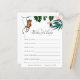 あなたのシャワーのゲストがあなたの赤ちゃんシャワーでベビーカードのためのこれらの愛らしい願いを記入する。ジャングルの赤ちゃん葉のシャワーコレクションに合わせて水色のジャングルのと動物をフィーチャー。Mommy-to-beの名前とシャワーの日付でパーソナライズ。