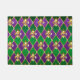 ジュエリー、紫と緑の菱形のマルディグラの背景、飾金ゴールド百合。