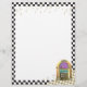 レトロジュークボックスと白黒チェッカーボードのフレームと金ゴールド楽譜文具。