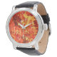 ジョイ時計デザイナーオレンジ赤い黄色葉の 腕時計
