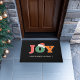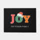 フェスティバルカラフル、タイポグラフィ"JOY"サンタハット、ホリデードアマット。カスタマイズご家族で