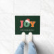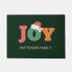 カラフルフェスティバル、、タイポグラフィック"JOY"サンタハット、緑、休日のドアマット。カスタマイズご家族で