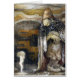 長い髪の大きなトロールと茶色の帽子と毛皮のケープを着て、小さなブロンドのピクシーのような女の子に微笑んでイヤリング。Bland Tomtar Och Troll(小妖精や小人とトロールの間で)のスウェーデン版からジョン・バウアーによる美しいイラストレーション。