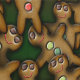 赤と緑の上のスケッチコラージュの人の形のジンジャーブレッドのクッキー。