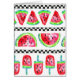 このデザインはスイカの切れ、半分の水彩画であり、白黒競争のアイスキャンデーは中間点検します。 それZazzleとSpoonflower.comの生地、壁紙およびギフト用包装紙のカード、ギフトのゆがみおよびギフトバッグで利用できるis is