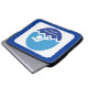 スイミングギフト、泳ぐ人、青い円のカスタム ラップトップスリーブ