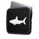 白と黒のデザインで泳ぐサメのシルエット。