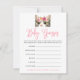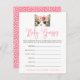 カードの上にピンクの花の冠をかぶった水色のグレーと白い猫が登場するかわいい赤ちゃんシャワー推理ゲームカード。「ベビー推測」という言葉はピンクの台本にお洒落登場する。の指示カスタム、推測基準、およびママの名前と赤ちゃんシャワーの日付でパーソナライズ。このデザインはSweet Waterカラー子猫コレクションとコーディネート。