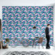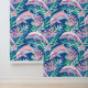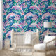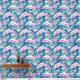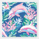 ピンクとブルーの海洋植物で満たされた青い海で泳ぐ白とピンクのイルカを特徴とするシームレスなパターン。このデザインはお洒落イルカと鮮やかカラフル水中競技植物と共に水中のシーンを捉えよくはしゃぐる。