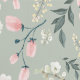 この柔らかくて甘いデザインは、パステルに水色の花を特徴としている。