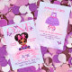 愛らしいアフロのパフのポニーテール、大きな表情豊かな目、そしてバラ色の丸々とした頬で飾られた魅力的な人形のような民族(アフリカ系アメリカ人)の赤ん坊の女の子に出会う。💜鮮やかな紫とピンクのラッフルガウンを着て、大きなヘアボウを備え、蝶やハートを合わせた色合いのパステルグラディエントの天空の背景を背景にセット。🎀ご招待の後ろにユニークは、便利な服と靴のサイズのガイド👗👟があり、お客様に最適な贈り物を選択する簡単を作る。💜誕生日の女の子のショー、お気に入りのキャラクター、動物、または色でデザインをパーソナライズし、特別な特別な作🌟。ベビーガールの最初の誕生日パーティーに最適。🎂🎀