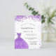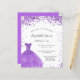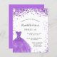 甘モダンい16スタイリッシュ、16歳の誕生日パーティーへの魅力的な招待。前面:白い背景に紫、薄紫の輝き、紫のドレス。名前は手書文字のスタイルスモダンクリプト付き。カスタマイズしてパーティー詳細を追加する。