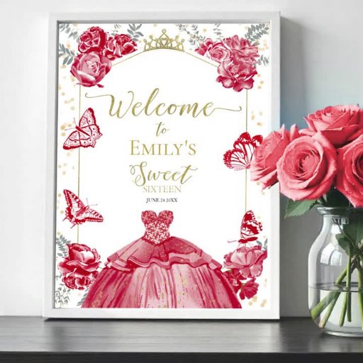 最祝も魅力的な方法であなたの甘い16!我々の水色フローラ赤い招待状は、優美な蝶で飾られ、お祝いのためのトーンを設定お洒落。私たちの壮大な紙吹雪で喜びを補完ポップ・アートの!あなたのパーティーをユーフォラスな開花に変換し、私たちの招待状としてカラフルとして思い出を作成する。