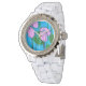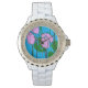 スカイブルーにピンクのチューリップを手描き 腕時計