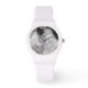 レディーススポーティな時計は白で表示され、スカルプリントの黒、グレーと白のトーンの時計顔。ま買カスタマイズた、あなたの名前、任意の文字や写真を追加するか、色を変更する。白またはピンクの時計のいずれかを選択。