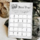 ハロウィンブライダルシャワーやハロウィンをテーマにしたブライダルシャワーに最適なパーソナライズされたスカルハロウィーンブライダルシャワービンゴゲームで、お祝いに不気味なひねりを加える。ゴシック様式のスカルデザインを搭載し、ゴシック様式のブライダルシャワーアイディアやゴシックブライダルシャワーの雰囲気を愛する花嫁に最適。Til Death Usパーティー私たち、またはTill Death Do Us Partの激しくロマンチックなテーマとあなたのハロウィーンのブライダルシャワーアイディアにおもしろいを追加。