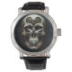 複雑なギアと絡み合ったワイヤーでエッチングされた未来的なスカルの冷却イメージ。スカルは薄暗く不気味な輝きに包まれ、長く威圧的な影を投げかけている。その中空の眼窩は、冷たい計算能力で満たされた空虚を見詰めているように見える。全体的な雰囲気は恐怖と差し迫った運命の一つである。