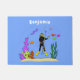 この可愛いデザインは、奇妙な海の生活に囲まれた私たちの漫画のスキューバダイバーを特徴とする。明るい幸せな水中競技おもしろい!
