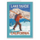 スキーヤー運のスノースキー – カリフォルニア州タホ湖 – ヴィンテージ旅行ポスターは2007年に作成された。この画像はカリフォルニア州タホ湖の風景を描いている。