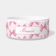 ピンクガーリーのボウドッグボウル簡単にあなたのペットの名前を追加するキュラッシブなスクリプトフォント。トレンディーコケットのピンクの弓パターン。