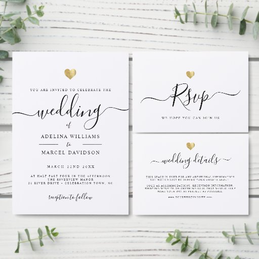 Minimal Modern (Rose) Gold Heart Wedding Suiteデザイン: Petrichor Design Co.