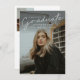この写真モダン卒業発表の招待コンボはエレガント、スクリプトの大学院オーバーレイとカスタマイズ可能な名前、学校と写真を前面に備えている。背面には、おめでとうとイベント詳細が追加の2枚の写真で提供されている。卒業生素晴らしを紹介する方法。