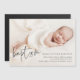 このスモダンクリプトベビー写真バプテスマの招待は、美しいフルブリードの水平写真と手書きバプテスマのアートと編集可能なミニマル文字を備えている。このクリックデザインに対する編集ボタン。