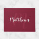 モノグラムとパーソナライズされたネームパーソナライズされたフォントスタイルにファミリー名を、背景に軽いブルゴーニュの赤いスクリプモダントフォントスタイルにモノグラムを含むブルゴーニュの赤い背景。新婚の贈り物、家族のための休日の贈り物、家族の懇親会の好意、引っ越し祝いパーティーの贈り物や特別な機会のための贈り物として最適。