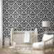 スクロールダマスクのパターン黒(白) 壁紙