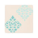 クリーム色の背景に光と中ティール(緑がかった色)の詳細でスクロールと葉のダマスクの繰り返しデザイン。