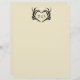 このカスタム結婚式招待状レターヘッドは、追加の情報を追加したり、結婚式の日に自分のメニューやプログラムを作成するために使用したりするのに最適なカスタム。紙はクリーム色またはアイボリー色で、新郎新婦のイニシャルを構成するハートの形でスケルトンの手のイラストレーションを特徴とする。グラフィックと文字が黒い。