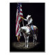 2014年のスネーク川のスタンピードの国絵を描歌の間にアメリカの旗を持つパロミノと白い馬の上の女性のカーボーイの豪華な写真。