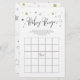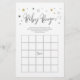 白い背景にグレーと金ゴールドの星が付いたスクリプトモダンフォントを備えたベビシャワーゲームカードは、ジェンダーのリビールベイビーシャワーに最適!