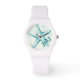 ビーチや他の場所に連れて行くおもしろいの女性の腕時計でスプラッシュを作る,アクアブルーの水色のヒトデと鮮明で新鮮な白。イニシャルを追加しカジュアルて、屋外の沿岸の素晴らしファッションアクセサリーを作成する結婚(一致する花嫁の贈り物!)や夏の旅行のためのスポーティな時計。