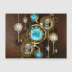 ターコイズのアンティークは、黄銅のギアと錆びた茶色の背景に黄金の鍵を備えた時計。ステームパンクスタイル。
