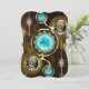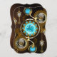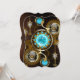 ターコイズのアンティークは、黄銅のギアと錆びた茶色の背景に黄金の鍵を備えた時計。ステームパンクスタイル。
