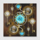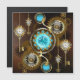 ターコイズのアンティークは、黄銅のギアと錆びた茶色の背景に黄金の鍵を備えた時計。ステームパンクスタイル。