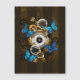 黒のローマ数字の文字盤と丸いスチームパンク飾時計の組成、金ゴールドと真鍮ギア、青いモルフォ蝶と茶色の背景に損傷したレンストライプのズ。ステームパンクスタイル。