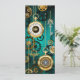 ジュエリー、金ゴールドチェーン付きの金ゴールドウォッチ、緑のテクスチャの背景の鍵。ステームパンクスタイル。